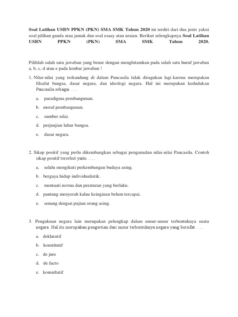 Soal usbn pkn smk 2021 pdf. Soal usbn pkn smk 2019 kurikulum 2013 dan kunci jawaban. Soal Latihan Ujian Sekolah Ppkn Pkn Sd Mi Tahun 2021 2020 2021 Pendidikan Kewarganegaraan Pendidikan Kewarganegaraan. Bukan dari hasil Ujian Nasional melainkan.